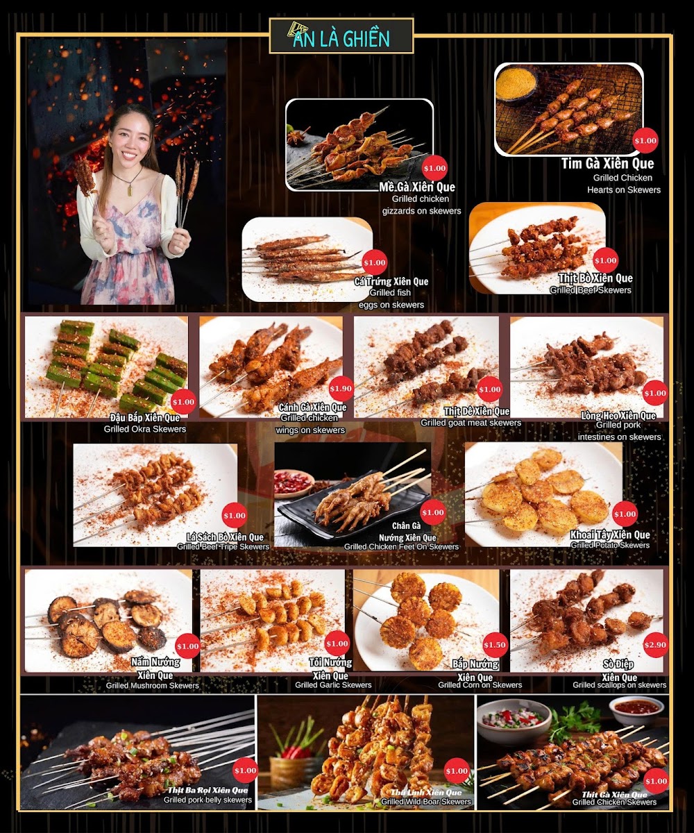 The menu at Ăn Là Ghiền offers a comforting blend of traditional Vietnamese dishes alongside casual bites, perfect for any time of day. Whether you're settling in for a warm bowl of phở or sharing grilled seafood and BBQ dishes over a leisurely meal, the variety caters to both quick lunches and relaxed dinners.